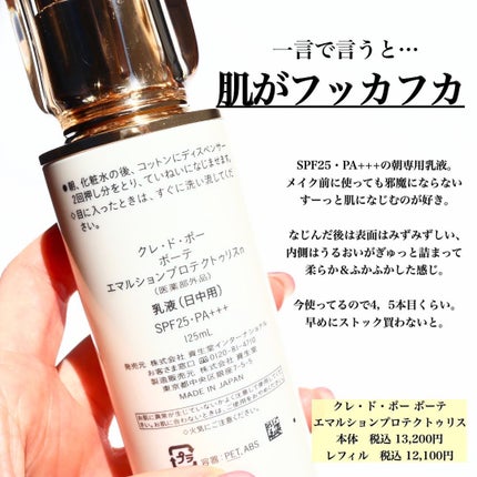 | 商品の特徴 | エマルションプロテクトゥリス(ジュール) - 乳液 - スキンケア。楽天市場】クレドポーボーテ 乳液(美容・コスメ・香水)の通販。cle de peau BEAUTE 【2025.7NEW】資生堂 クレドポーボーテ。。。5mlの詰め替え容器に詰め替えたのみなので120mlは入っています。エマルションプロテクトゥリス(ジュール) - 乳液 - スキンケア | ||