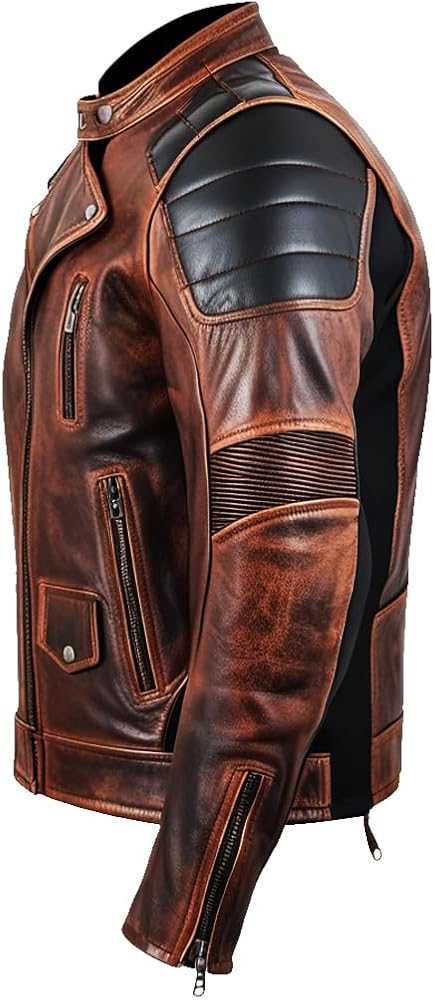 - メンズ > ジャケット・アウター > ジャケット・アウター Old Brown Leather Bikers Jacket DEGNER Vintage Distressed Leather Biker Jacket, Brown and Black