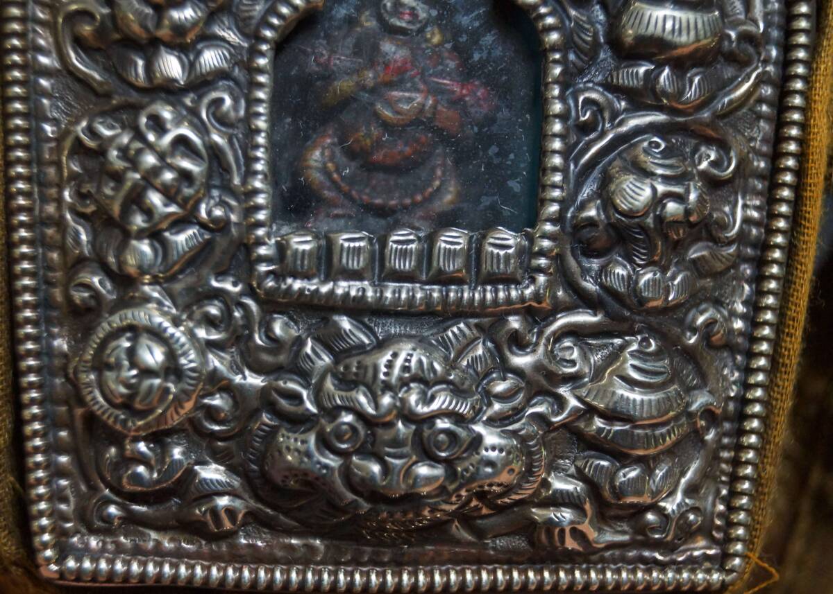 - 美術品・アンティーク・コレクション > 工芸品 > オールドチベット ガウ 携帯祭壇 『財神』仏像 窓銀製装飾手造り打出し装飾 閑】オールドチベット ガウ 携帯祭壇 『財神』仏像 窓銀製装飾